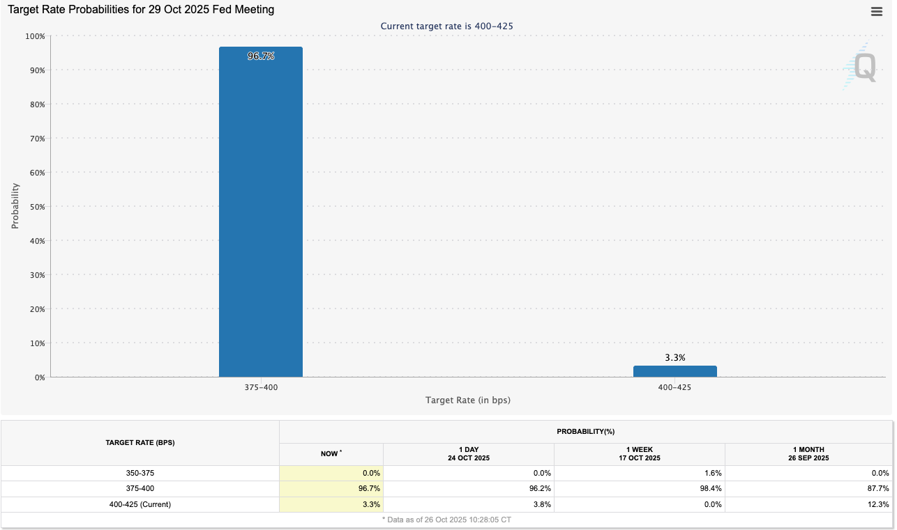 Cuộc họp FOMC tiếp theo vào 1:00 ngày 30/10/2025. Theo CME Group