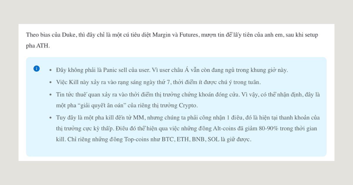 Bias của Duke về việc chưa xảy ra Panic Sell. Theo Report 12/10