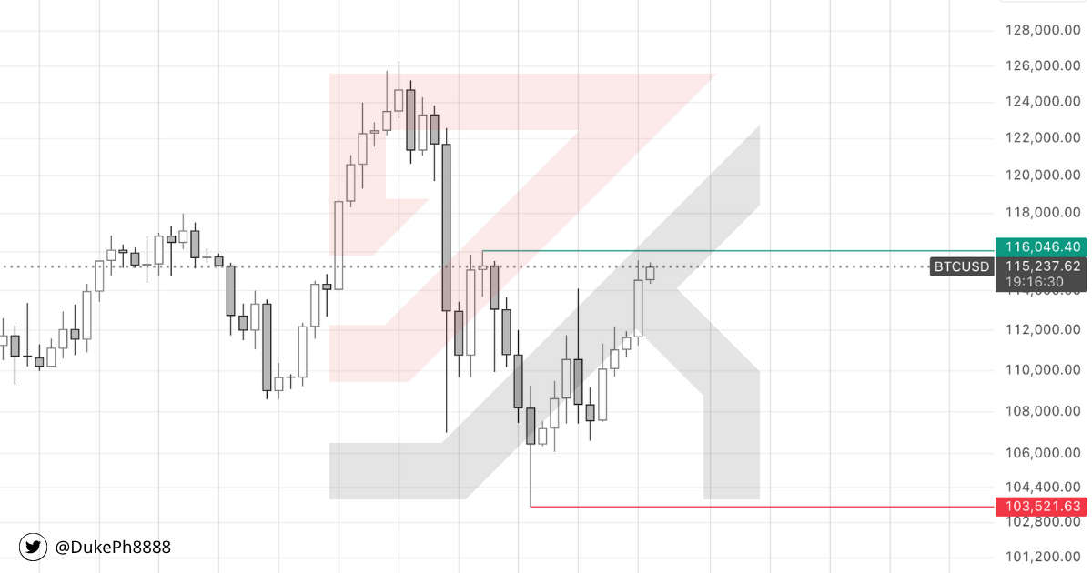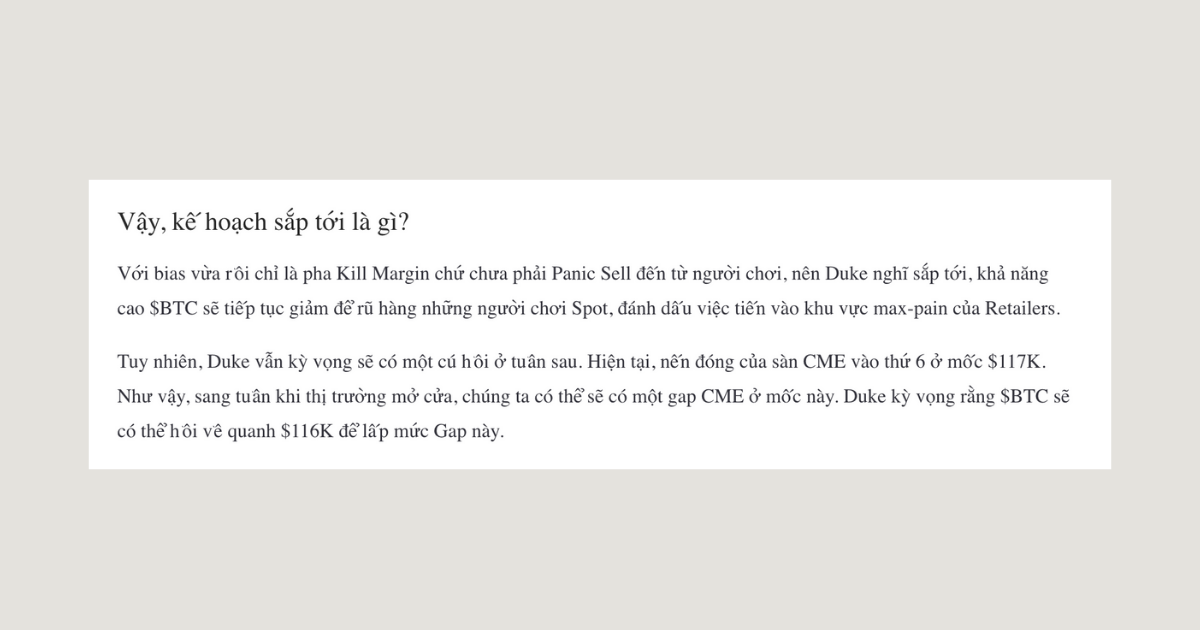 Bias của Duke về việc hồi phục về $116K rồi tiến vào vùng “max-pain”. Theo Report 12/10